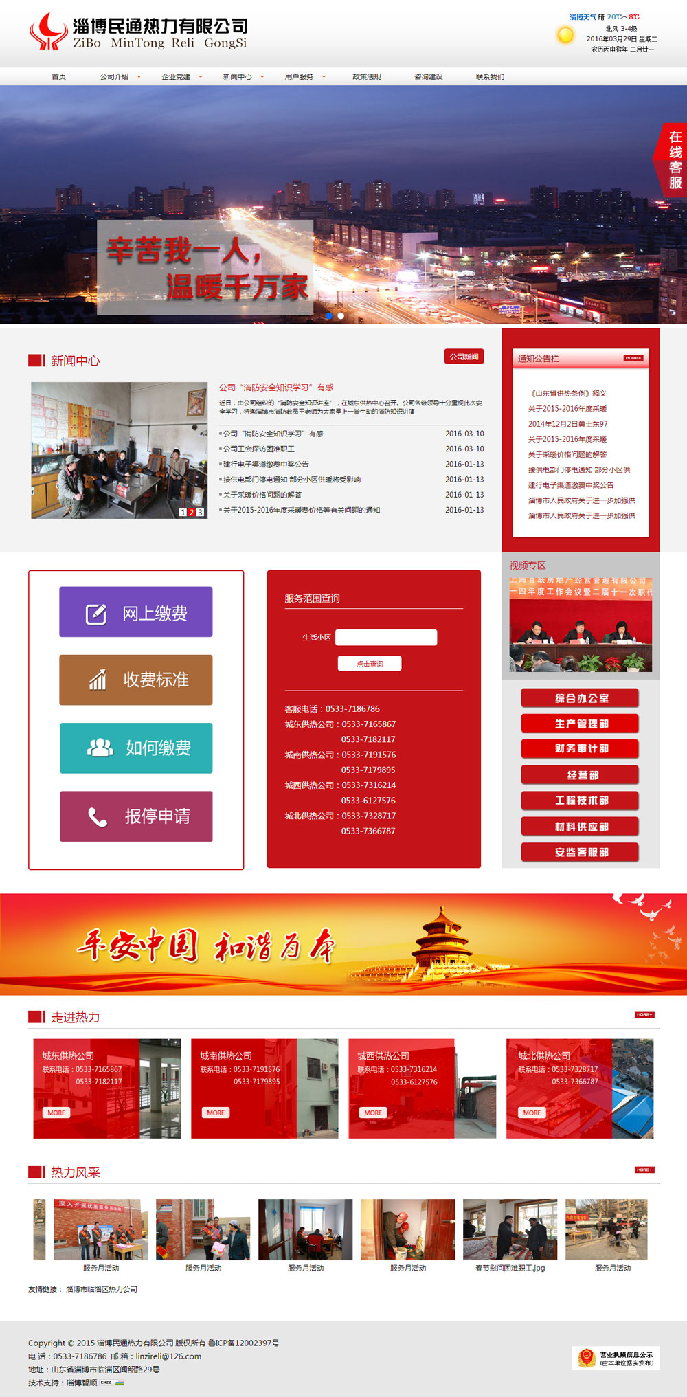 公司現有綜合辦公室、生產管理部、財務審計部、經營部、工程技術部、材料供應部、安監(jiān)客服部等七個職能部門。根據熱源分布和熱源特點現下設城東供熱公司、城南供熱公司、城西供熱公司、城北供熱公司等四個供熱公司。公司現有職工174名,其中在編事業(yè)人員54人,管理人員6人,專業(yè)技術人員21人,工勤人員27人。